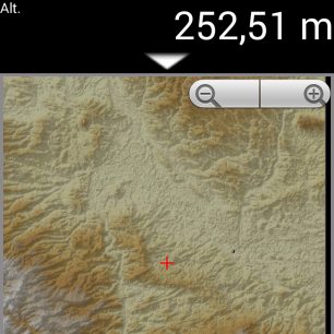 Aplikace má dva módy. Jednoduché zobrazení číselných hodnot a mapové zobrazení. V mapovém módu vidíte svou aktuální polohu. Pomocí posunu a poklepání na mapu lze zobrazit nadmořskou výšku i na jiném místě, než kde se právě nacházíte.