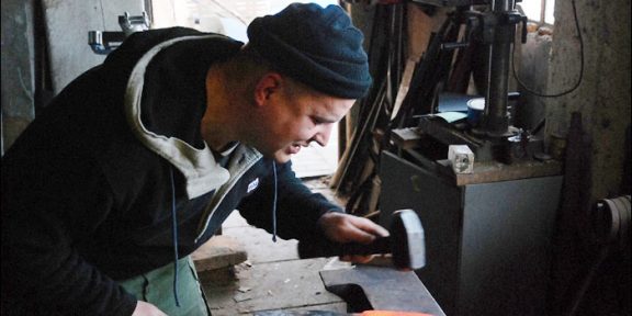 Většinou jsou to oceli vyrobené rychle ztužitelnou práškovou technologií, oceli jako Elmax či K390 Bohler, kdy jen materiál na samotnou čepel často převyšuje cenu sériově vyrobeného nože. Já čepele kovu z těch nejkvalitnějších uhlíkových i nerezových ocelí. Z uhlíkových kovám vlastní damašky či sendviče pro zvýšení mechanické odolnosti čepele. V čepeli se střídá ocel s vysokou houževnatostí s ocelí o vyšší tvrdosti, než by bylo možné použít při homogenním kusu oceli. Každá ocel má svoje specifika a výhody pro účel, k němuž byl nůž vyroben. Tyto věci řeším s každým zákazníkem, pokaždé chci vědět, co od svého nože požaduje, co by měl splňovat. Každou čepel, kterou vyrobím, podrobím zkoušce kvality, která odpovídá jejím technickým parametrům, a tak vím, že se lidem do rukou dostane jen to nejlepší. Ručně vyrobený nůž má ještě jednu přednost, a to je jedinečnost, duše. Velice rád používám k výrobě čepele materiály, které mají za sebou nějakou historii, ať je to ložisko z motoru stíhačky Me-262, listové pero z Fordu Model T, svorníky ze základů chrámu svatého Víta či prastaré podkovy. Rukojeti třeba z mamutího klu, fosilního dubu nebo kožené dorazy z petřínské lanovky z dob, kdy byla ještě tažena lanem… Mám šanci vdechnout kusu starého materiálu novou formu a význam. To mě na mé práci těší asi nejvíc. Zákazníkova radost z jedinečného a neopakovatelného kusu je pak i mou radostí.