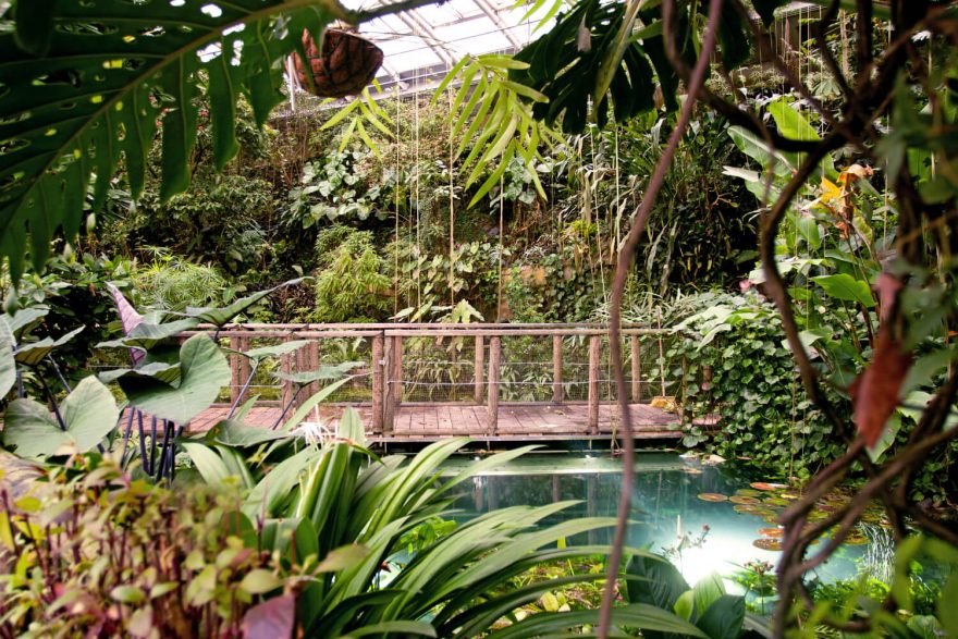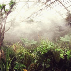 Vstupujeme do nížinného deštného lesa, kde se okamžitě zamlží objektivy a pocit vlhkosti a tepla nás zaplaví pocitem opravdových dálek. Mezi exotickými stromy se pnou liány, které umí i nádherně kvést, ze stromů kávovníku původem z Amazonie visí kakaové boby, v nižším patře se červenají květy ibišku. Atmosféru pralesa dokreslují i dvě jezera plná ryb a zvuk blízkého vodopádu. Poslední část skleníku přibližuje prostředí horského tropického lesa v Andách, asijských velehorách i subtropické jižní Africe. Peckou je vzácná vegetace stolových hor Venezuely nebo sbírka masožravých květin. Na jaře zaplaví prostory skleníku tisíce motýlů, kteří se líhnou z kukel a zdobí svými barevnými křídly zelené listy pralesa. A při nočních prohlídkách si užijeme neuvěřitelných žabích zvuků.