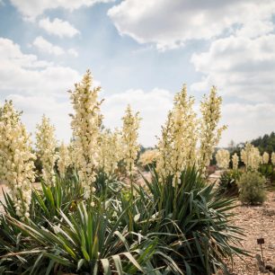 Krajinnou architekturu si užijeme taky v Pinetu, sbírce krásně tvarovaných jehličnanů, kterou najdeme pod jezírkem. Tady kvetou trvalky převážně severoamerického původu a plynule přechází do velkého záhonu lemujícího průchozí cestu nad americkou prérií.