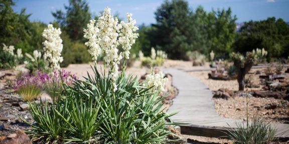 Severoamerická polopoušť orientovaná na jižním svahu je domovem suchomilných rostlin. V kamenité poušti, kterou se vinou dřevěné cestičky, se zelenají ostré listy juky, kterou můžeme spatřit kvést nádherným bílým květem, drobné kvítky suchomilných trvalek, ale jsou tu i různé agáve, sukulenty a kaktusy, především druhy rodu opuntia, které jsou domovem od Kanady po Ohňovou zemi. Trnité a ploché články zdobí od června velké různobarevné květy, často zakrývající celé tělo rostlin, a od podzimu do jara na článcích vytrvávají okrasné dužnaté červené až tmavě fialové plody.