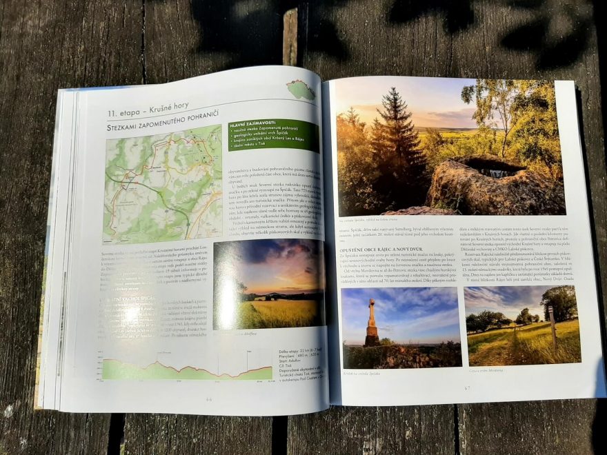 Dál je podrobně popsaná každá denní etapa s mapou, výškovým profilem, vypíchnutím hlavních zajímavostí na trase, mnoha fotografiemi profesionální kvality i autorovými osobními poznámkami o trase. Člověk tak získá cenné informace, kde udělat malou odbočku, čeho si všimnout, jaké historické události se s místem pojí, odkud je nejlepší výhled apod. V neposlední řadě je knížka svým velkorysým formátem a precizním zpracováním příjemným společníkem pro večerní listování a hledání, kam příště vyrazím 😊