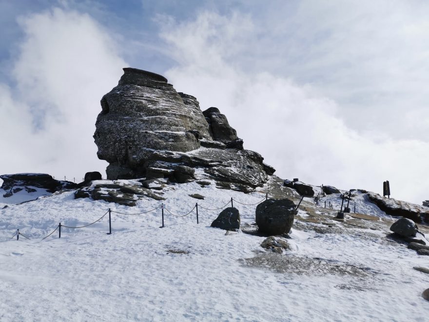 Cesta končí betonovým přehrazením u dolní stanice lanovky. Zde se dá parkovat a nahoru vyjet pouze lanovkou. Nevěřte internetu, první kabinka jela kupodivu už v devět hodin ráno a v ní jsme byli my dva a tři vlekaři. Cesta trvá čtvrt hodiny a platí se až při výstupu 35 LEI/os. Tohle místo rozhodně stojí za to! V kombinaci se sluníčkem, bezvětřím a dvěma metry sněhu je to ráj na zemi.