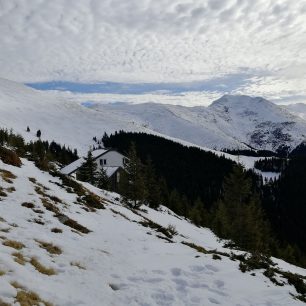 Odtud se dá dojít až na horu Omu (2 507 m) nebo sjet na druhou stranu do údolí. Pozor, zpátky se zase musíte dostat po svých, lanovka nefunguje. My měli trochu mlhu, větrno a málo sněhu, takže jsme prochodili skaliska pěšky, sjeli zpátky k autu a na druhou stranu hory si zajeli autem.