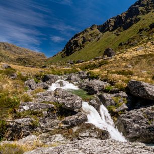 Po obědě v podobě instantních nudlí ohřátých na malém plynovém vařiči se vydáváme dále. S hrůzou zjišťujeme, že už jsou 4 hodiny a před námi je stále ještě 18 km k místu, kde si můžeme postavit stan. Na Routeburn tracku je totiž pár míst, kde můžete přespat, nicméně je to drahé a rezervaci je nutné provést dopředu. Na tracku není dovoleno rozdělat si stan, kde se vám líbí, proto nás ještě čeká dlouhá cesta k místu, kde navazuje další track, na kterém se již dá spát kdekoliv.