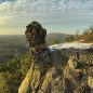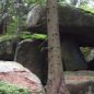 Osamělá rulová skála cca 15 m vysoká na severovýchodním úbočí Mechovince.