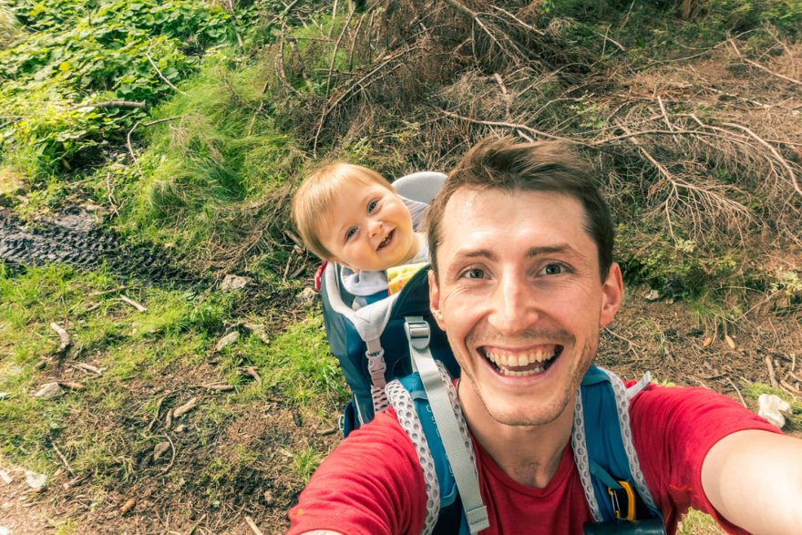 Výletování s dítětem je poměrně věda. Najednou totiž zjistíte, že všechno na co jste do teď byly zvyklí už nefunguje a naprosto vše se musí přizpůsobit malému drobískovi na vašich zádech. Naše začátky byly pozvolné. Asi ve 3 měsících jsme našeho prcka začali brát na kratší výlety v látkových nosítkách. Těch jsme vyzkoušeli hned několik než jsme na pár měsíců zakotvili u nějaké ne příliš známé značky z Německa, která nám vyhovovala nejvíc… První větší výlet s přespáním pod stanem (v našem případě pod ultralehkým tarpem) jsme absolvovali když bylo Kryštofovi 7 měsíců. Zvládli jsme to bez větších obtíží i díky tomu, že chodíme hlavně s ultralehkým vybavením. Prcka jsem v tomto případě nosil vepředu v nosítku a na zádech jsem měl lehký batoh se vším co bylo potřeba.