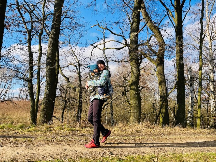 Dcera nikdy nebyla kočárkové dítko, takže jsme ji nosili od narození. První procházky absolvovala v šátku, ale brzy jsme přešli na nosítko Monilu uni, protože s ním byla jednodušší manipulace. Jelikož je dcera od malička velmi zvídavé dítě, nošení vpředu ji velmi brzy přestalo vyhovovat, protože z něj neměla moc výhled. Přesun na záda potěšil i mě, protože s její váhou už při předním nošení trochu trpěla má záda. Jelikož jsem však tímto přišla o možnost nosit na zádech batoh, pořídili jsme v necelém roce dětskou krosnu. Využíváme model Osprey Poco Premium, který pro nás byl jasnou volbou zejména z důvodu velkého úložného prostoru. Samozřejmě plně naložený včetně dítka už něco váží, a tak každá naše výprava dá dost zabrat. S manželem jsme takto absolvovali první vandry a přechody českých hor. Jelikož v té době dcera ještě dost spala, zvládali jsme denně v pohodovém tempu kolikrát i 25 km.