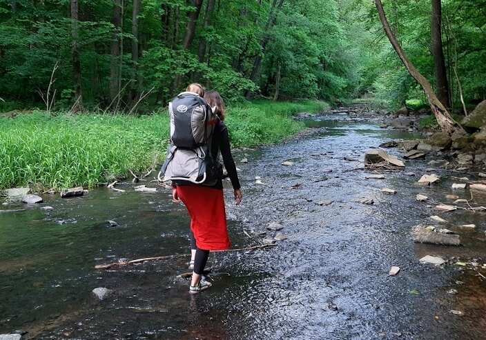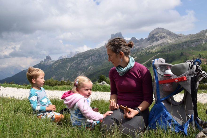 Měla jsem děti relativně brzo po sobě. Prvorozený syn byl vysloveně nosící typ a nabyli jsme dojmu, že kočárek máme zbytečně. První tři měsíce se nosil v šátku, pak jsme pořídili Manducu. Posloužila nám velmi dlouho, nosila jsem na břiše i pak na zádech. Druhorozená dcera byla naopak zcela kočárková a nošení ji začalo být příjemné až v roce. Takže jsem výletovala s kočárkem a druhým dítětem na zádech. Až se dnes divím, co všechno jsem s kočárkem projela (např. skalní stěny v Tisé!). K Manduce jsme si pak pořídili i nosící krosnu. Přeci jen ne všude se dá dostat s vozíkem na věci a nosit dítě na břiše a batoh na zádech už nebylo komfortní. Do krosny (měli jsme Osprey Poco) jsem se zvládla sbalit na celodenní výlet (svačina, foťák, pití, náhradní oblečení) pro sebe i 2 caparty. Chtěla jsem být prostě samostatná, neodkázaná na stezky pro kočárky, s možností pohybovat se kdekoli. Děti měly do tří let nacestováno na horách možná více než mnozí dospělí. Rakousko, Tatry, Julské Alpy, Dolomity, Karpaty, Pyreneje … nebyly to žádné extrémní dlouhé treky, ale i tak jsem ráda, že jsou od mala zvyklé na celodenní pobyt a pohyb venku.