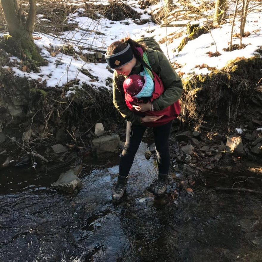 Dcerku jsem nejdřív nosila v šátku (100 % bavlna od Storchenwiege) – první pokusy proběhly doma v jednom měsíci, ve třech měsících už se malá spokojeně nosila na túrách kolem jezer v Solné komoře, kde jsme šátek kombinovali s kočárkem. Ušli jsme tak 10 – 15 km pohodovým tempem. Kolem 8. měsíce jsme přešli na nosítko (ergonomické značky Kibi), předtím jsme ale vyzkoušeli i pár jiných značek, co tak úplně neseděly, takže za mě je opravdu důležité osobní vyzkoušení a správné nastavení nosítka. Nošení mi vyhovovalo i v zimě, kdy jsem dcerku mohla mít pod „nosící“ bundou, aby jí nebyla zima.