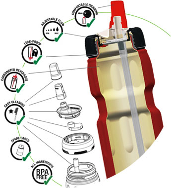 Součástí uzávěru je integrované brčko, takže již nemusíte lahev zvedat dnem vzhůru a zaklánět hlavu. To ocení především řidiči nebo cyklisté. Můžou se totiž občerstvit, aniž by spustili oči z cesty, po které se řítí. Dětem zase bude vyhovovat velmi snadná manipulace a samozřejmě oblíbené dětské motivy. Radost budou mít i sportovci, kteří volali po vyšším průtoku a tedy rychlejším doplnění tekutin v průběhu výkonu.