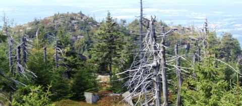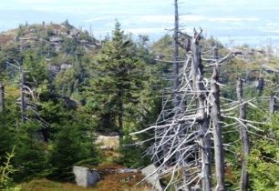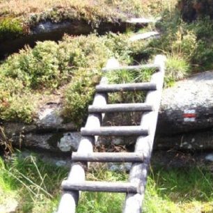 Směrem dolů se totiž pěšina prodírá mezi většími či menšími balvany, místy vede přímo po kamenech. V jednom zvláště exponovaném místě je prakticky nutné sjet přímo po zadku (i když mladí tu skáčou dolů jak kamzíci). Následuje dalších téměř půl kilometru po kamenité, mokré a špatně schůdné cestě příkře dolů až k rozcestí Pod Ptačími kupami.