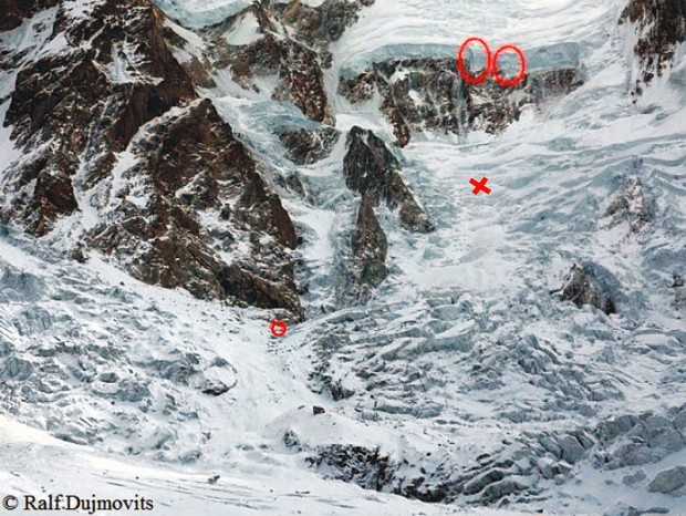 Ralf a jeho filmařský parťák Darek Zaluski své snažení o Kinshoferovu cestu v Diamirské stěně už ukončili (Darek měl Ralfovi pomáhat jen přes úvodní ledopád). Důvodem bylo vysoké objektivní nebezpečí ve stěně, které hrozilo především spuštěním laviny, a to v důsledku uvolnění jednoho z obrovských seraků. Ani lezecké podmínky nebyly ideální. Strmé kuloáry byly pokryty vrstvou tvrdého ledu.