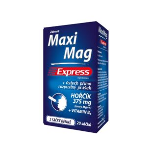 - Maximag Forte hořčík + Vitamin B6: prášek rozpustný v ústech, přispívá k uvolnění svalů, zmírnění svalových křečí, zmírnění únavy a vyčerpání