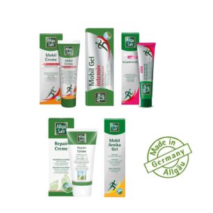 - Allga San Mobil Gel Intensiv: speciální chladivý masážní gel na klouby a svaly při natažení svalů a svalové horečce s kosodřevinovým olejem.