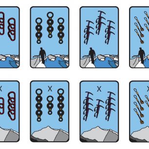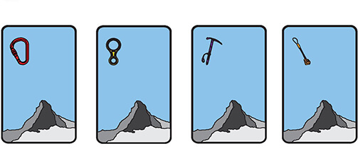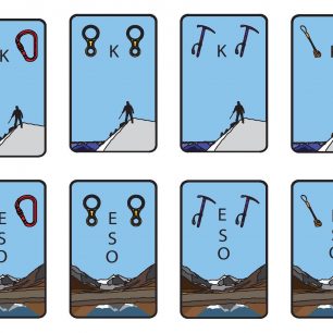 V sázce je 32 hracích karet se speciálním lezeckým designem. Rozměrem se blíží kreditní kartě a jsou v plastovém provedení, hrát se s nimi tak dá v dešti i na sněhu.