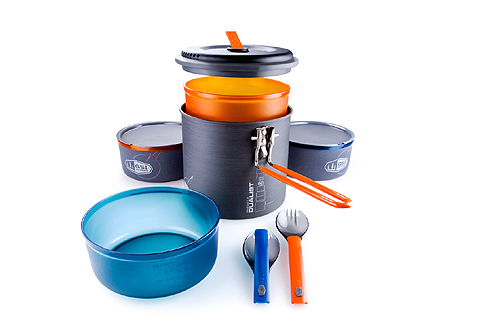 Sada na vaření pro dva s nejvyšší povrchovou úpravou Pinnacle, která získala několik outdoorových ocenění. Do sady lze umístit také plynovou kartuši 220g a plynový vařič.