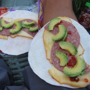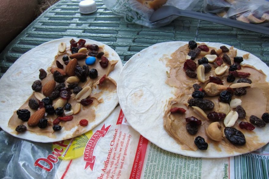 - Pro obědové zastávky jsou fajn pšeničné placky – dá se na ně namazat nebo do nich zabalit téměř cokoliv a můžete být hodně kreativní. Placku můžete namazat burákovým máslem a posypat sladkým trailmixem (směs oříšků, rozinek, lentilek atd.), nakrájet do nich kusy sýra a zalít pálivou omáčkou, skvěle chutnají i s Nutellou. Dá se do nich zamotat tuňák z plastové konzervy. Možností je nekonečně.