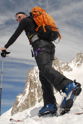 Další chodivé vázání BD 01 (výrobce Black Diamond) se velmi pohodlně ručně obouvá díky pevné konstrukci patní hrazdičky, přepnutí lyžařskou hůlkou na sjezd/stoupání/ sjezd je mimořádně snadné a rychlé. Obě zmíněné značky navíc nabízejí jako doplněk stoupací železa pro usnadnění stoupání na namrzlém sněhu.