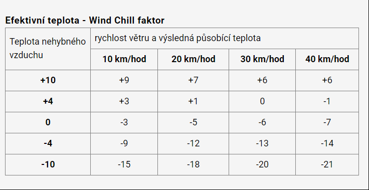 Efektivní teplota – Wind Chill faktor