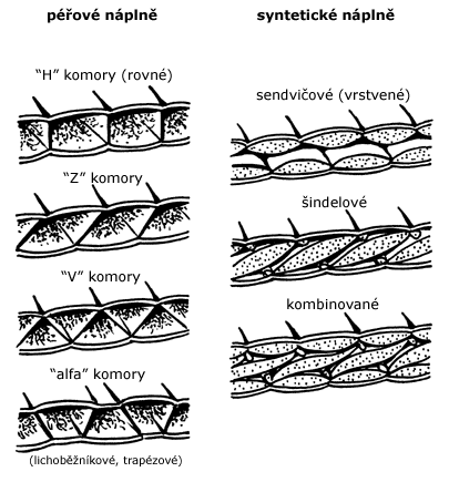 - 4 – izolační náplň, nejčastěji umělá vlákna nebo peří