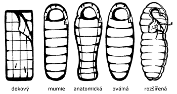- Mumiový – tvar optimalizuje velikost vyhřívaného prostoru a hmotnost spacáku, zatažením tkanice je dokonale chráněna hlava.
