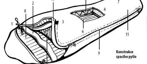 - 5 – konstrukce stěny spacáku, použitý způsob závisí na izolační náplni
