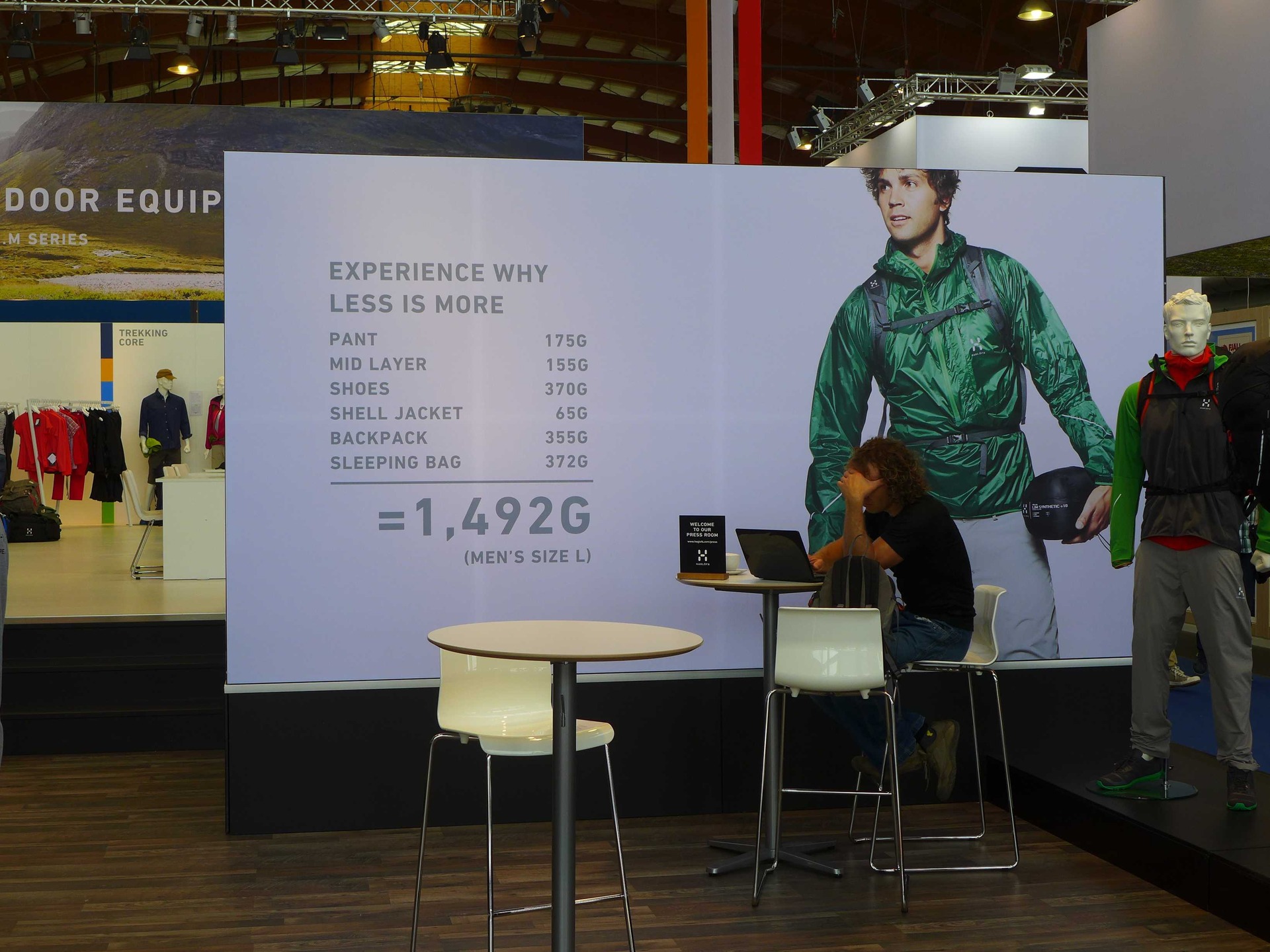 Vybavení na aktivní pohyb a aktivity zaměřené na rychlost jako trail running či fast packing se stává nedílnou součástí nabídky velký outdoorových firem. Napříč outdoorem pak nadále zůstává trend menší zátěže, lehčích výrobků a většího pohodlí. Hesla jako „Wenig ist Mehr“ / „Less Is More“ a podobná zdobily nejednu expozici.