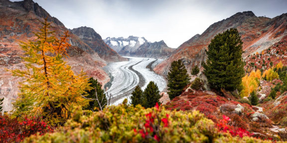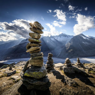 S cestou k Aletschskému ledovci bych moc neotálel, ledovce totiž opravdu tají stále větší rychlostí. Žasneme nad černobílými fotkami v restauraci Märjelen Gletscherstube – zatímco kdysi stála tato horská chata u jezera Märjelensee na dohled bočního splazu Aletschského ledovce, dnes už z tohoto splazu zbyly jen ledem vyleštěné a kluzké kameny, po nichž můžete na vlastní nebezpečí seskákat až k hlavnímu tahu nejdelšího a největšího evropského ledovce. Tající led vytváří nádherné jeskyně, jimiž prosvítá denní světlo a led hraje všemi odstíny bílo modré barvy. Do jeskyní určitě nevstupujte, nikdy nevíte, kdy se ulomí další kus.