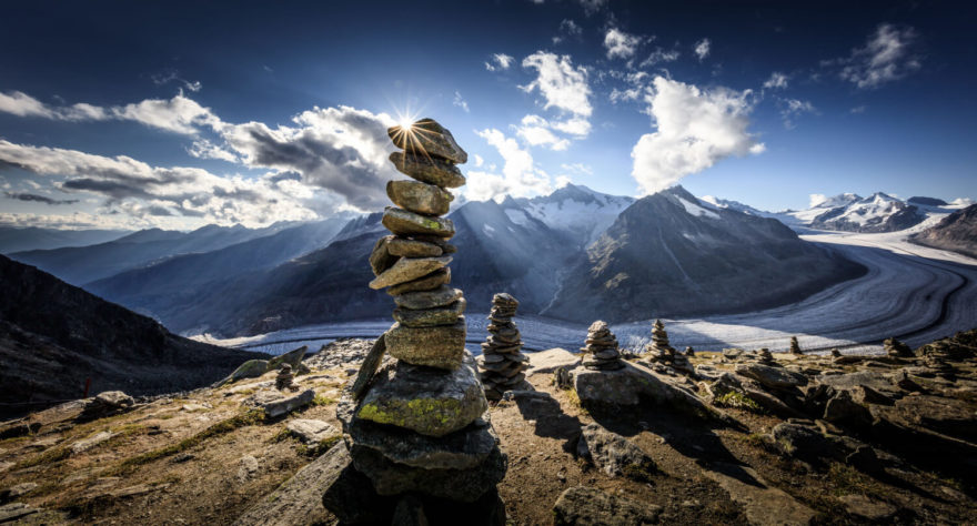 Rozlehlé louky plynule přecházejí ve skalnaté hřebeny, které dosahují výšky až 2900 metrů. V létě se můžete do nejvyšších poloh dostat pomocí čtyř lanovek (dvou z Riederalpu a po jedné z Bettmeralpu a Fiescheralpu). Nejlepší výhled na celý ledovec nabízí právě lanovka z Fiescheralpu, která vás vyveze na 2850 metrů vysoký předvrchol Eggishornu. Tady se můžete občerstvit v chatě Horli-Hitta nebo si domluvit luxusní spaní pod hvězdami v Cube Aletsch – million star hotel. Od 450 CHF se tu nabízí přenocování pro dva: nádherné výhledy, hvězdné večery i ranní svítání si tu můžete užít s vínkem na terase nebo ve vířivce.
