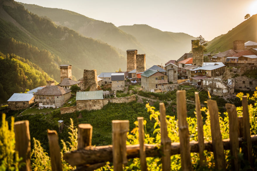Finále treku představuje příchod do skupiny vesnic Ušguli. Vysoké obranné kamenné věže vytvářejí dramatickou kulisu pod nejvyšší horou Gruzie, pětitisícovou Šcharou. Dodnes zde zůstává přes zimu dvacítka rodin. Po včerejším deštivém dni se ve společnosti toulavých psů dočkávám krásných ranních výhledů. Z Ušguli to přímo vybízí k několika výletům k ledovcům či na vyhlídku nad vesnicemi. Jsem již ale v Horní Svanetii o dost déle, než bylo v plánu, a opouštím tuto mystickou krajinu liduprázdnou dvoudenní túrou přes sedlo Latpari směrem do Dolní Svanetie. Svanetie se s odstupem deseti let změnila. Horské vesnice se vylidňují a s přibývajícími turisty ubylo svérázných divokých setkání s místními. Zdejší divoké hory i stezky mezi vesnicemi ale rozhodně neztratily na atraktivitě.