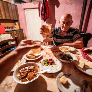 Pokračuji v treku směrem na západ. Vrcholný zážitek v gruzínském stylu právě přichází. Jako poslední dva obyvatelé malé odlehlé osady Kichkhuldashi žijí sedmdesátiletí manželé Maria a Valerij Vibliani. Jejich pohostinnost a otevřenost nezná mezí. Rozhoduji se u nich zůstat několik dnů a nafotit reportáž o mizejícím tradičním životě na horském statku. Starají se zde o téměř třicítku krav, od rána do večera se nezastaví. Dojení, výroba sýrů, kosení sena. Téměř všechny potraviny si vyrábějí vlastní, stůl se v duchu místních tradic vždy prohýbá pod náporem pohoštění. Ubytování u místních obyvatel vždy doporučuji, a to nejen v Gruzii. Osobně mám rád střídání nocí v přírodě ve stanu, ideálně hezky na vyhlídce, a nocí u místních ve vesnici.