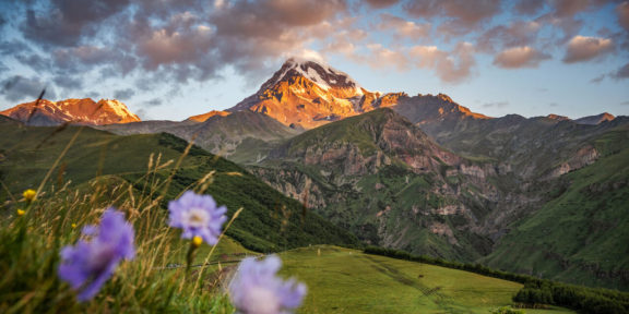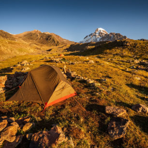 Přesouvám se přes hlavní město Tbilisi do možná nejnavštěvovanější horské lokality Gruzie. K ikonickému a velmi populárnímu kostelíku Nejsvatější trojice, který dominuje výhledům z kaváren ve městě Stepantsminda (Kazbegi), již dnes vede výletní silnice. Panorama s mystickou sopkou Kazbek (5 054 m n. m.) i okolní horskou scenerii si nakonec užívám nejvíce v ranním klidu hlavně díky přespání na okolních loukách. I na následný výšlap na poslední tábořiště před morénami a ledovcem se vyplatí vynést si stan, protože čisté dech beroucí výhledy na zaledněnou pětitisícovou sopku se z odpoledních mraků předchozího dne otvírají až za následujícího rozbřesku.