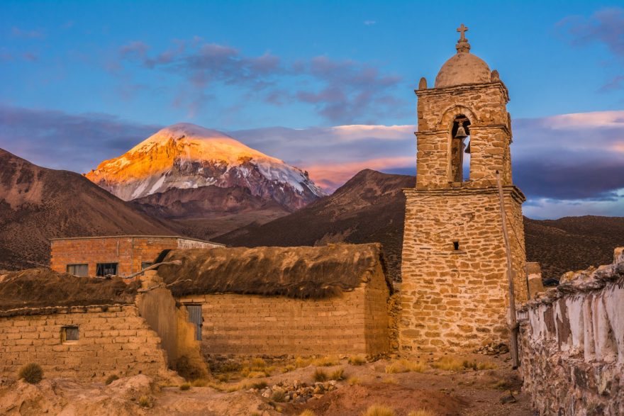 Do prašné stejnojmenné vesnice přímo pod horou Sajama jezdí jednou denně autobus. Vyrážíme odtud na pěší okruh národním parkem, obsahující i krátký vstup do Chile. Přicházíme do kouřícího gejzírového pole, v odtékajícím horkém potoku se dá krásně koupat. Míjíme dvě jezera na chilské straně hor a přes hranice se vracíme do Bolívie. U velké laguny s vysokohorskými mechy zakempujeme.