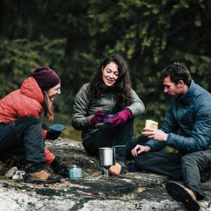 Pojďme si představit ukázkový příklad ECODESIGN produktu. Jedná se o turistickou prošívanou bundu Trek 100. Oceníte ji hlavně na treky, při kterých může teplota spadnout až k –5 °C. Díky zipu s dvojitým táhlem ji snadno složíte do levé kapsy. Váží 365 g ve velikosti M, takže žádná nadměrná zátěž v batohu. Ale co je důležitější – perfektně vás zahřeje. Vata ze šroubovitých silikonizovaných vláken zaručuje odolnost. I přes to, že je bunda tenká a velmi lehká, skvěle izoluje, a to díky vzduchu zachycenému uvnitř vláken výplně. Výhodou navíc je, že vata ze 100% polyesteru zůstává hřejivá, i když zmokne. A teď přichází na řadu ECODESIGN prvky. Vatu tvoří ze 70 % recyklovaný polyester, jehož použití přispívá ke snížení využití zdrojů na bázi ropy. Recyklací plastových lahví nebo recyklovaných textilií se při výrobě polyesteru omezuje využívání zdrojů i na bázi oleje a zároveň je zachovaná potřebná prodyšnost materiálu.