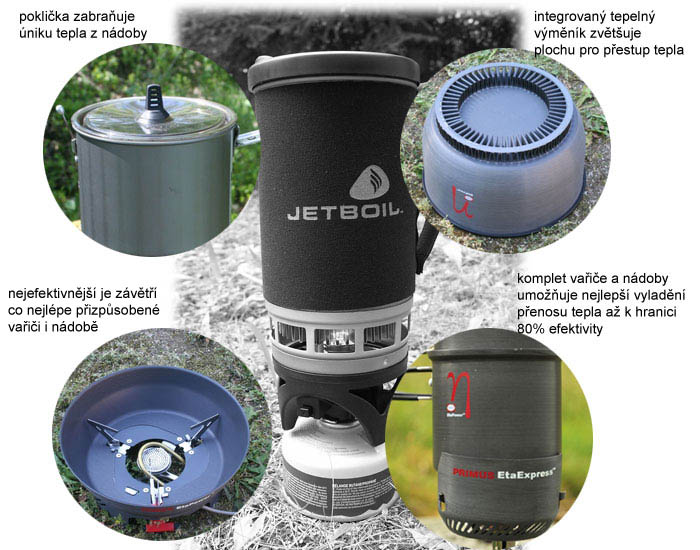 Ukázky kompletních setů, kdy vařič je navržen včetně nádoby s integrovaným tepelným výměníkem