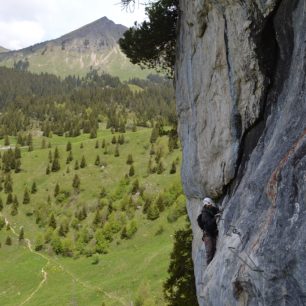 Mírnou komplikací v úvodu může být podmáčená zemina. Přímou úměrou platí, že čím více bláta na botách máte, tím více síly v rukou budete při lezení potřebovat. Náročnost této cesty má hodnotu (D). Energií tudíž zbytečně neplýtvejte, aby vám vydržela po celou hodinu a půl než budete moci sundat sedák a přilbu. V půli cesty se sice nabízí úniková varianta, ale využít jí by vás připravilo o to nejlepší nakonec.