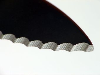 Výbornou inovací, která byla dosud u této firmy použita pouze na nožích určených pro armádu, je hlavní čepel s otvorem pro palec otvíratelná jednou rukou. Otvírání bylo zprvu tuhé, vyžadující větší úsilí, ale zakrátko došlo k uživatelskému “ochození” a nyní je otvírání velice pohodlné a rychlé. Čepel jde po krátkém nacvičení lehce otevřít i v rukavicích. Dvě třetiny čepele od špičky směrem k tělu nože jsou opatřeny zuby s jednostranným výbrusem břitu. Provedení zoubkování je jemné, ale schopné efektivně řezat strukturované materiály. Při řezu nedochází k zachycování materiálu a zastavení pohybu nože jako u mnoha agresivnějších vzorů. Třetina čepele je opatřena hladkým ostřím s pokračujícím jednostranným výbrusem. Při použití nože v běžném životě jsem ocenil umístění zubů v přední části čepele na rozdíl od běžného umístění k rukojeti, kdy je jemná práce a ořezávání velice nesnadná. Během testu jsem ale zpozoroval náznaky počínající zvětšující se vůle hlavní čepele.