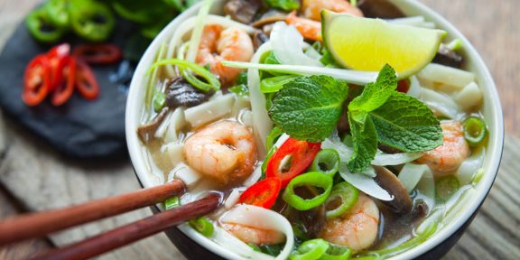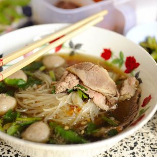 Phở – velmi oblíbená vietnamská polévka (ovšem vydá za celé jídlo), proslavená mimo Vietnam. Najdete ji v mnoha streetfoodech po celé zemi. Je to silný vývar s širokými placatými rýžovými nudlemi, masem a bylinkami. Phở mohou být jak samotné nudle, tak i polévka, v níž jsou nudle phở.
