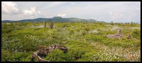 Červenohorské sedlo je jedno z nejvýznamnějších turistických, lyžařských a rekreačních středisek oblasti Hrubého Jeseníku, nachází se ve výšce 1013 m n. m.. Vede z něj 7 vleků a několik sjezdovek, výborné sněhové podmínky umožňují dlouhou zimní sezónu od poloviny prosince až do konce března. Z Červenohorského sedla vede v zimě upravovaná běžecká trasa po hřebeni na obě strany. Vstáváme v 7, v klidu snídáme, balíme, a pak pokračujeme na druhou část výletu. Po široké zpevněné cestě se vystoupá mezi sjezdovkami zpět na hřeben, obejde se vrchol Výrovky a stoupání pokračuje až k Malému Jezerníku (1200m). Opět nikde ani živáčka, je jen chladné slunečné ráno. Jde se po krásném hřebeni mezi rašeliništi, občas po dřevěných chodnících mezi mokřady zarostlými kvetoucími travami, jindy lesem z nevelkých smrků.