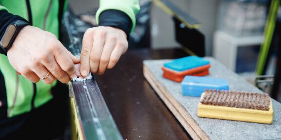 - Nezapomeňte na vybavení. Žehličku už jsme zmiňovali, ale nezbytné jsou i další pomůcky jako škrabka, kartáč, roztok na čištění skluznice neboli smývač a také speciální čisticí papír. Pokud chcete mít dobře připravenou lyži a nezničit si skluznici, zapomeňte na malířskou špachtli a technický benzín.