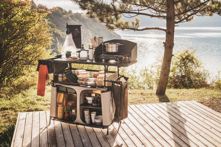 - Kempingový vařič a bomba. Můžeš mít vestavěnou plotýnku nebo podle potřeby vytahovat klasickou propanbutanovou bombu s vařičem. Dávej pozor při cestování do zahraničí, třeba ve Španělsku mají totiž jiný systém a tamní kartuše nejsou s vařiči dostupnými v ČR kompatibilní.