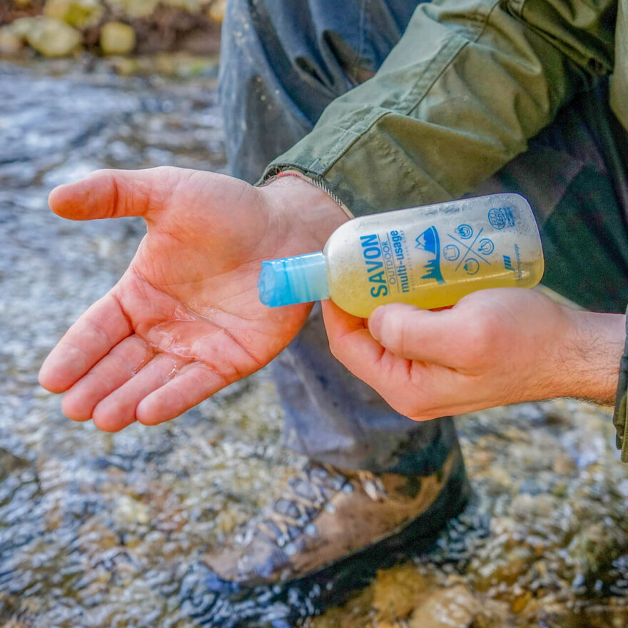 Mycí prostředek, který můžeš využít na umytí sebe, nádobí nebo na vyprání prádla. Mýdlo v lehkém skladném obalu se hodí na pěší výlety i do dodávky. Nejlépe funguje s teplou vodou, zvládne ale i opláchnutí studenou sprchou.