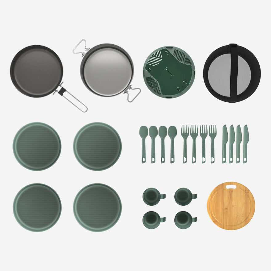 Kompletní 25dílná sada nádobí pro 4 osoby skvěle poslouží na pořádné vaření i stolování. V nerezovém ešusu můžeš vařit na všech typech vařičů i na otevřeném ohni. Hrnec i pánvičku lze dokonce použít i na indukci, takže si vaření v nich nacvičíš třeba doma na sporáku.