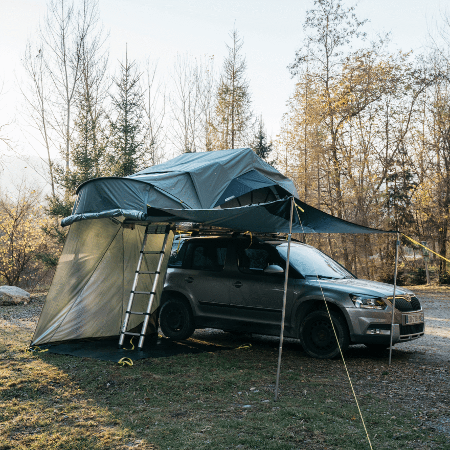 Extra velký kempingový přístřešek umí zvětšit obyvatelný prostor stanu nebo auta a vytvoří místo chráněné před sluncem a deštěm. Můžeš jej použít samostatně, při pikniku v parku nebo jej nainstalovat před dveře dodávky a vyrobit z něj improvizovanou markýzu.