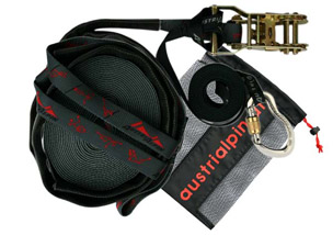 Základním prvkem slacklinu je dlouhý popruh, nebo lano.