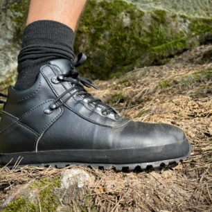 Boty jsem postupně zkoušel v terénu i v městské džungli. Na výšlapech v přírodě jsem kromě větší podpory stability kotníku ocenil hlavně odolnost vůči vodě. Pokud vám voda do bot nenateče po nohách, nemusíte se o nepromokavost bát. Z vlastní zkušenosti mohu říct, že u membránových bot mi membrána fungovala cca 3 roky běžného užívání. Potom už se o nepromokavost staral výhradně vnější materiál. Jak na tom bude membrána Ahinsa-tex a veganská kůže CF+ ukáže až čas.
