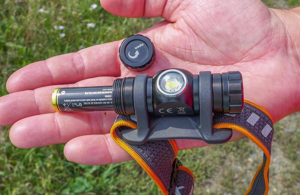 Kapacita akumulátoru 5200 mAh poskytuje vzhledem k výkonu služnou výdrž. V nejsilnějším režimu Boost o intenzitě 2000 lumenů vydrží čelovka svítit čtyři hodiny, při „standardních“ 200 lm pak 20 hodin. Stav nabití můžeme orientačně zjistit stiskem tlačítka na boku bateriového pouzdra: rozsvítí se kontrolka, jejíž modrá barva znamená nabití 50 – 100 %, žlutá barva 20 – 49 % a červená barva méně než 19 %. Pokud je akumulátor téměř vybitý, tak se čelovka rozbliká.