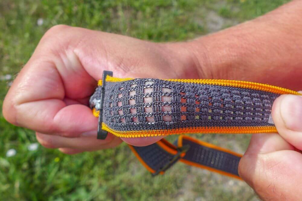 Hlavový popruh má vpředu i vzadu shodnou sponu – na svítilně i akumulátoru je rovněž shodný protikus, takže oboje se do spony jednoduše zasune. Základní kabel s krátkou kroucenou částí odpovídá právě této konfiguraci v podobě klasické čelovky. Je pravda, že akumulátor přece jen něco váží a pro dynamičtější aktivity, není nošení akumulátoru vzadu na hlavovém popruhu optimální. Ale když si vzpomenu na jednu z mých prvních skutečných čelovek Petzl Mega a její gumové pouzdro na tři malé buřty, tedy malé monočlánky C, tak akumulátor XEO 19R je vlastně lehká váha. Pro běžné použití, ale i chůzi apod. je velmi dobře použitelné. Stejně tak i na horolezecké přilbě, pokud tedy nebudeme chtít akumulátor ukrýt někam pod oblečení kvůli nízké teplotě. Výhodou sestavy s akumulátorem na temeni je celkově snazší manipulace s čelovkou.