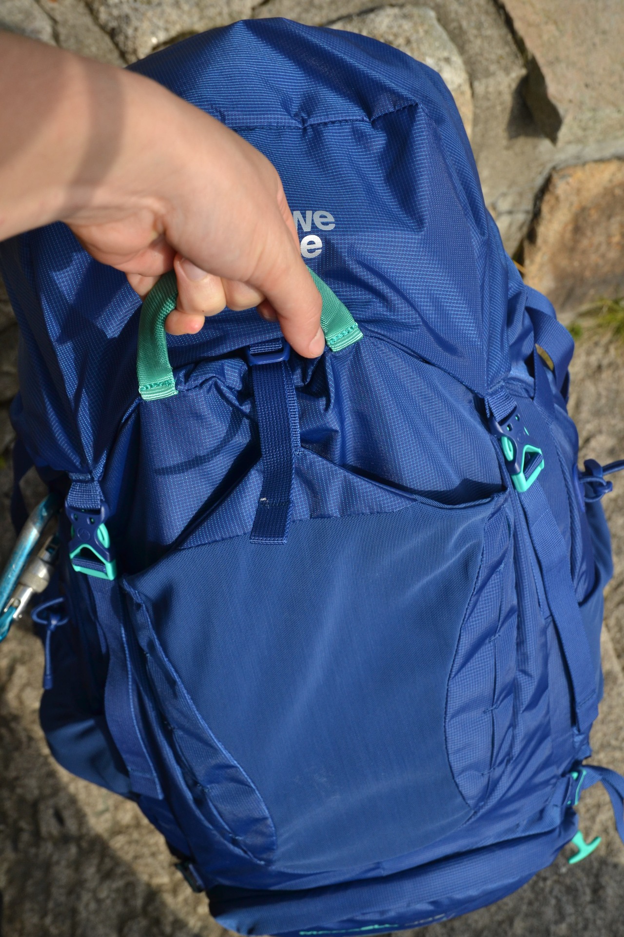 Díky dvěma dodatečným popruhům umožňují skrytá oka také uchycení karimatky. Bohužel je tím vyřazena z provozu vrchní síťovaná kapsa na helmu a částečně i přední vstup do batohu.